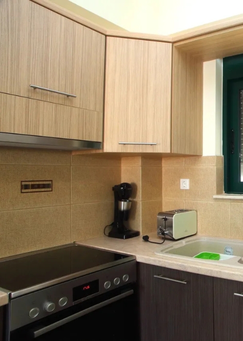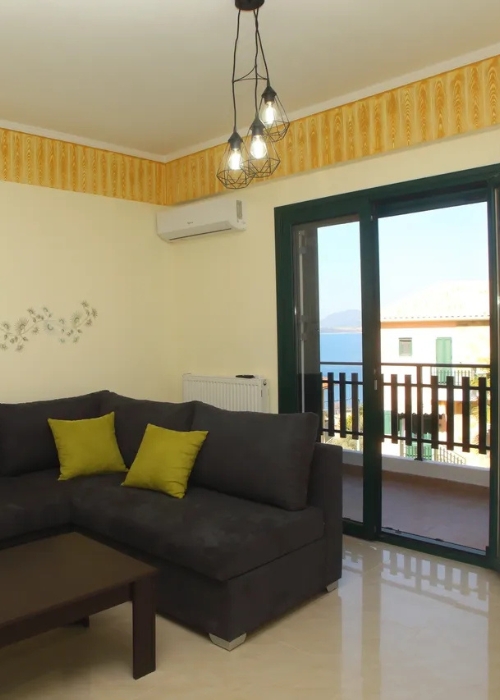 The middle and main floor contains the kitchen, living room, and dining area, serving as the central hub for cooking, dining, and socializing. This villa combines comfort, elegance, and picturesque surroundings, making it the perfect choice for a luxurious stay on the island of Lefkada.